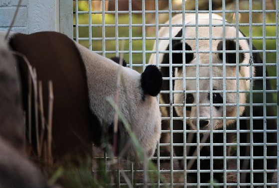 大熊猫"阳光"急切想靠近娇妻"甜甜"