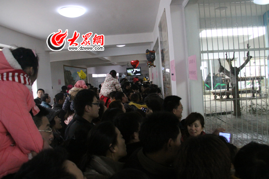 2月14日下午,济南市动物园大熊猫里挤满了前来观赏大熊猫的市民