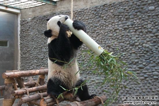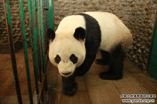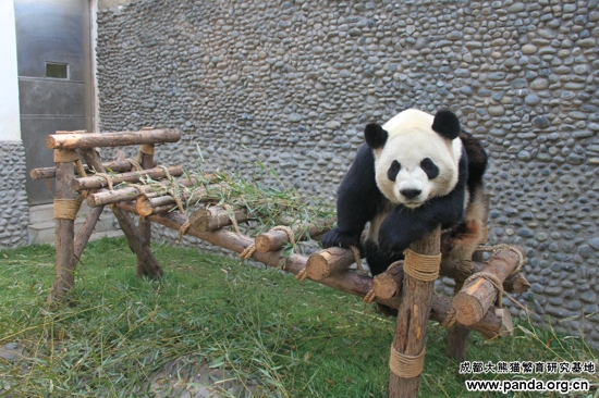 大熊猫“大毛”洗澡完毕