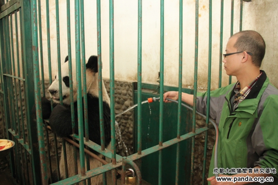 即将赴加大熊猫“大毛”洗澡