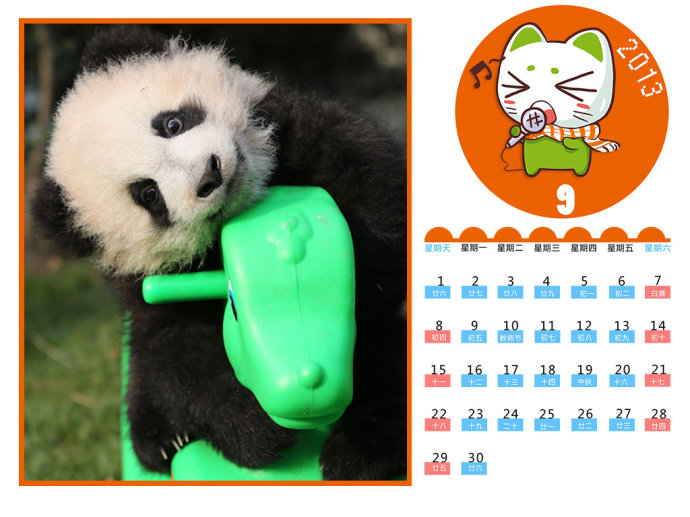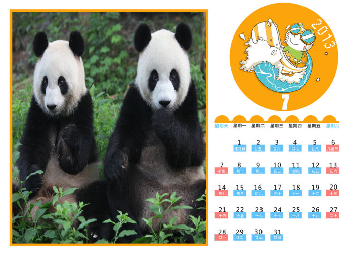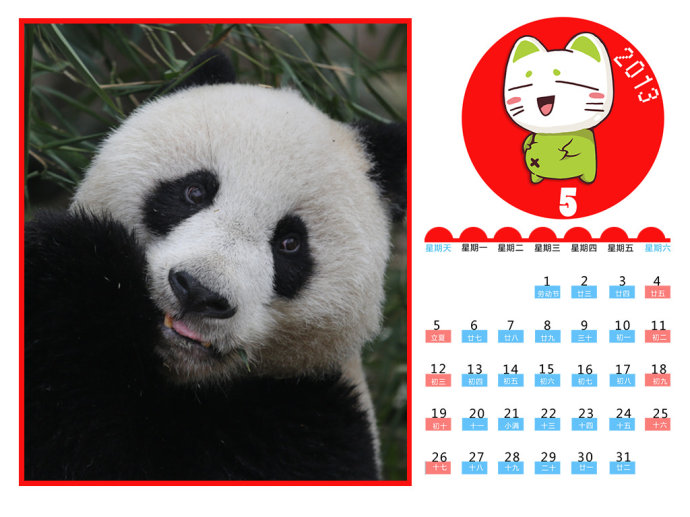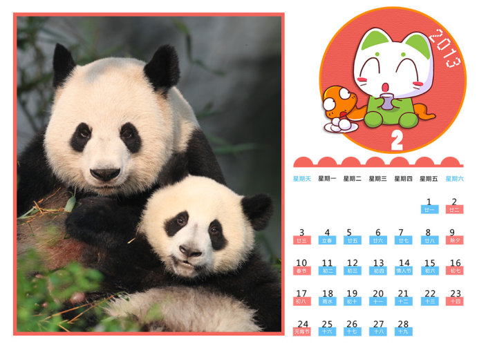 传奇的2012已经过去了,我们都很怀念它。不过,看到大熊猫们带着2013悄悄走来,就预示这又是精彩的一年。2013年大熊猫年历隆重登场啦!这就意味着在2013年的12个月里,将会有12只可爱的明星熊猫宝贝陪我们温馨度过。还等什么呢?春节到成都大熊猫繁育研究基地找寻年历上的明星大熊猫吧!