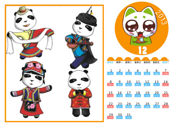 十二月:将在“2013中国?成都熊猫嘉年华”登场的可爱卡通民族熊猫!