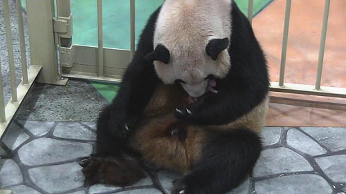 成都大熊猫繁育研究基地旅日大熊猫“良浜”于北京时间2012年8月10日15:30(东京时间16:30)在日本和歌山白浜野生动物园顺利产下一雌性幼仔,该仔初生体重167克。目前母仔均平安。