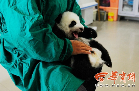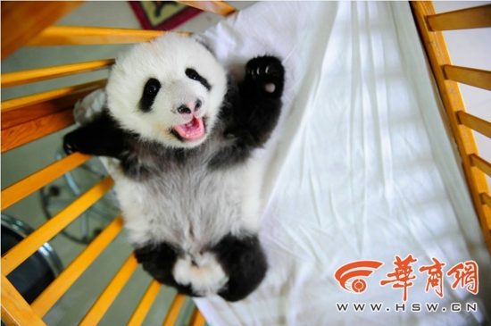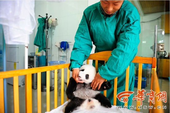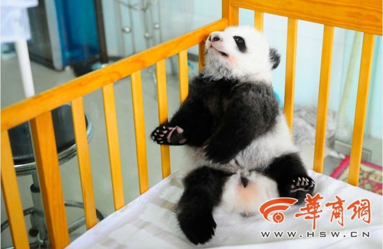 据了解,出生一个多月时熊猫宝宝开始睁眼,四五个月大的熊猫宝宝就要开始学习走路。