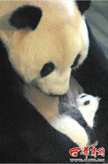 新出生大熊猫宝宝的姥姥“白雪”,在2003年生下我省第一只人工繁育大熊猫“楼生”20多天时的合影