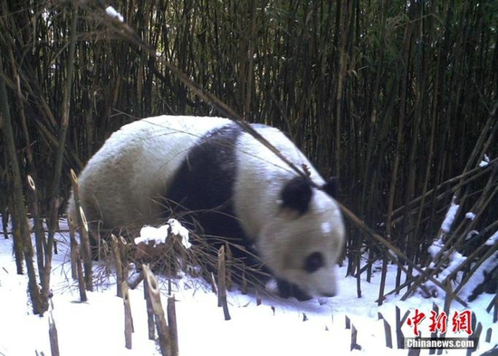 四川一保护区拍到野生大熊猫