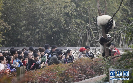 2014年1月31日,在成都大熊猫繁育基地,幼年熊猫吸引了众多游客的目光。当日是大年初一,成都大熊猫繁育基地举行2014熊猫嘉年华活动,9只憨态可掬的幼年熊猫给游客带来阵阵欢笑。据工作人员介绍,这9只熊猫都是2013年出生的,是一起玩耍长大的“小伙伴”。本次嘉年华将持续至初七,游客在观看熊猫的同时还可以参加“熊猫艺术秀”、“彩绘大熊猫”等活动。