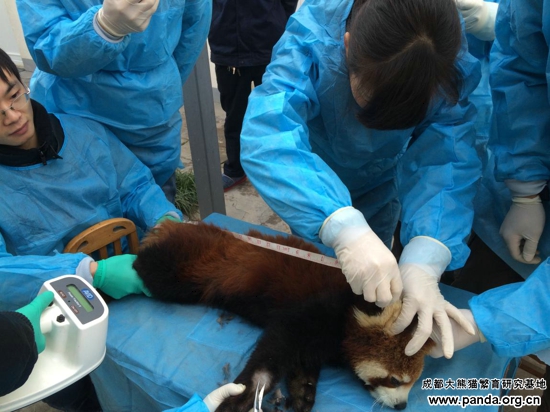 进入2014年2月,去年在大熊猫繁育研究基地出生的27只小熊猫也近半岁了,为了更好地对它们进行管理,辨别他们,决定为他们植入“芯片身份证”,同时也为他们采血进行体检及亲子鉴定。
