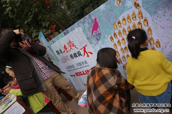 本次活动展期正值新春佳节,来熊猫基地的游人熙熙攘攘,借此机会更加大了“拒绝野生生物贸易”展的宣传力度,增加了公众的参与度。如果大家都能认识到目前野生生物、生态系统以及人类健康面对的诸多威胁,我们就有可能改变那些不良消费行为,达到保护野生动植物、维护生态环境的目的。