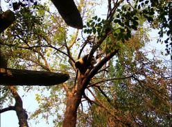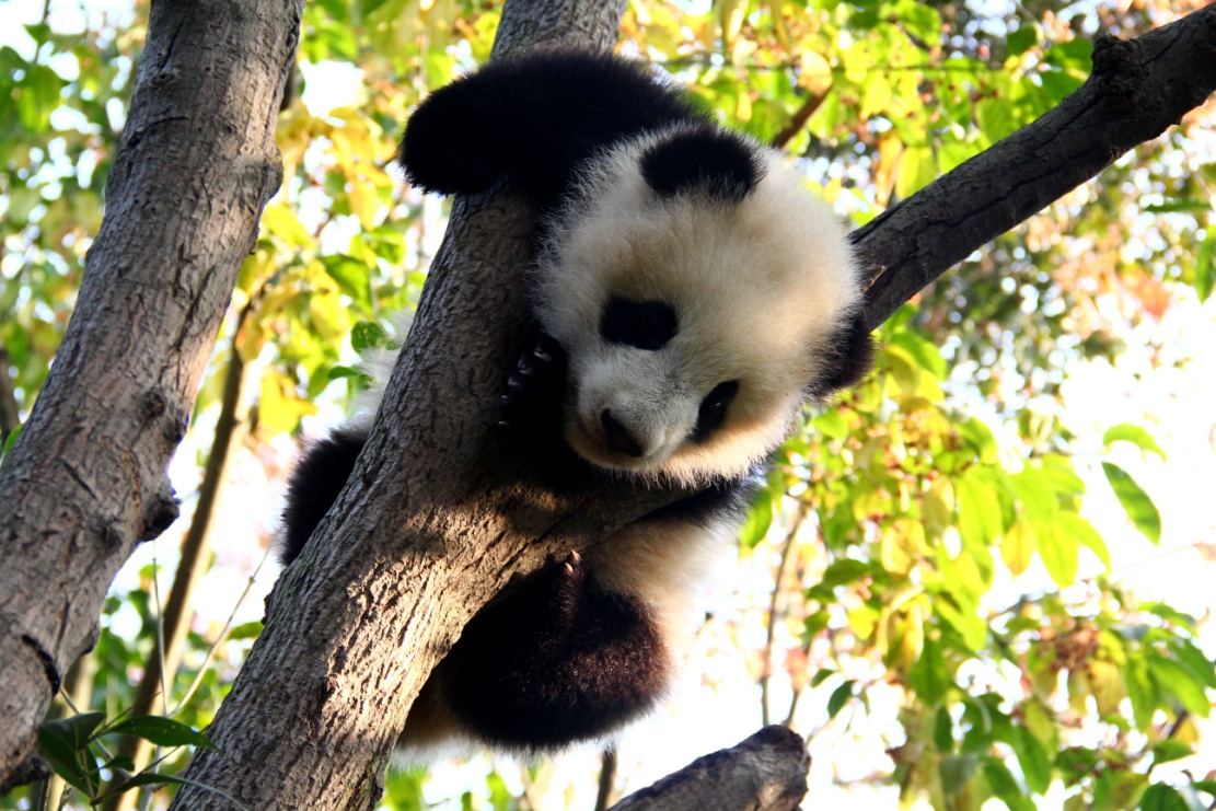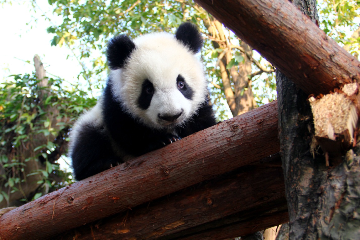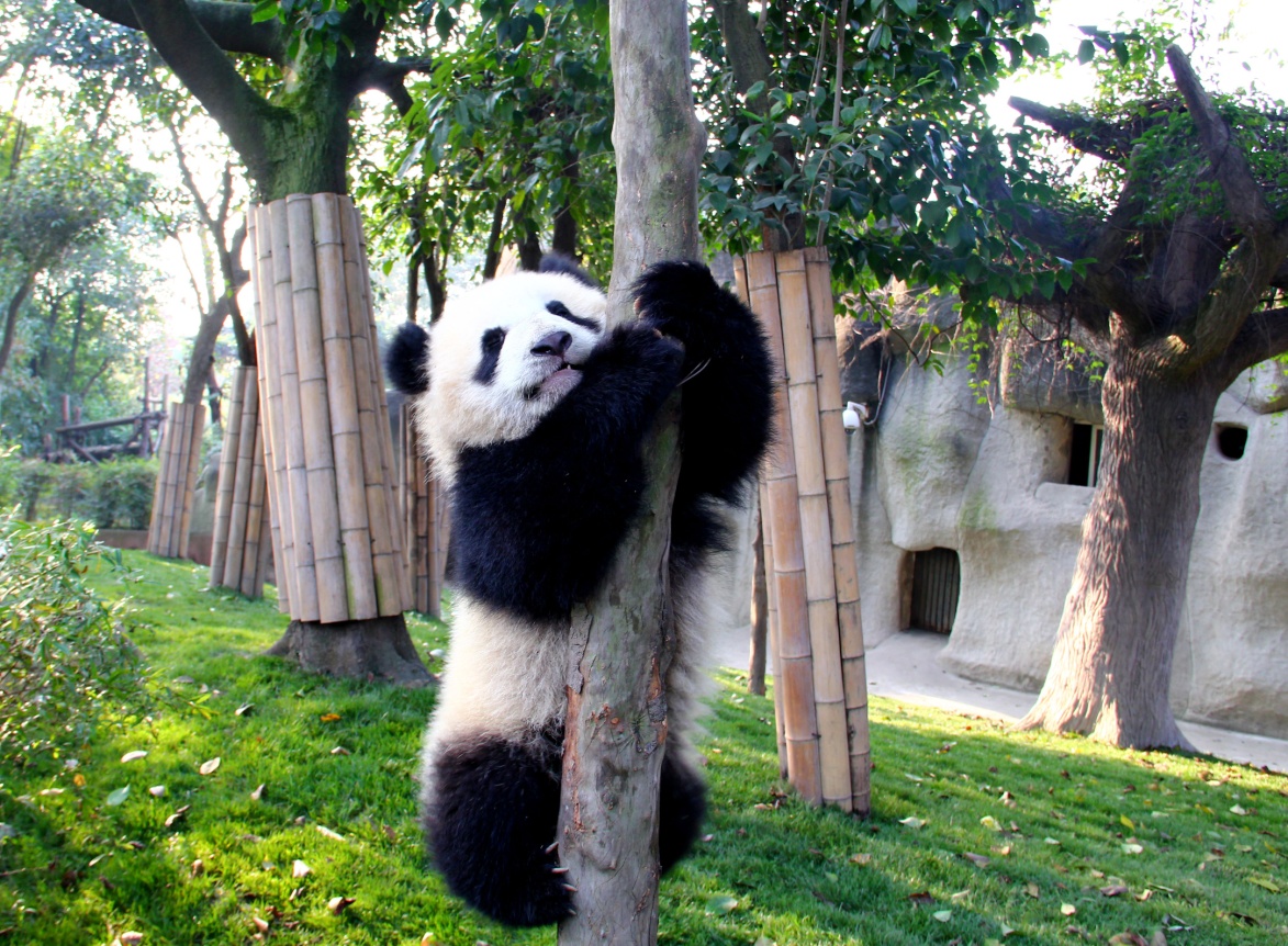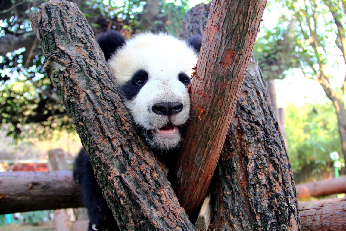 “奇一”和“奇果”都是爬树小能手,“奇果”率先占领了一棵位置绝佳的树木。“奇果”:“我可比大姐‘梅兰’爬得还高!”