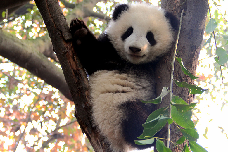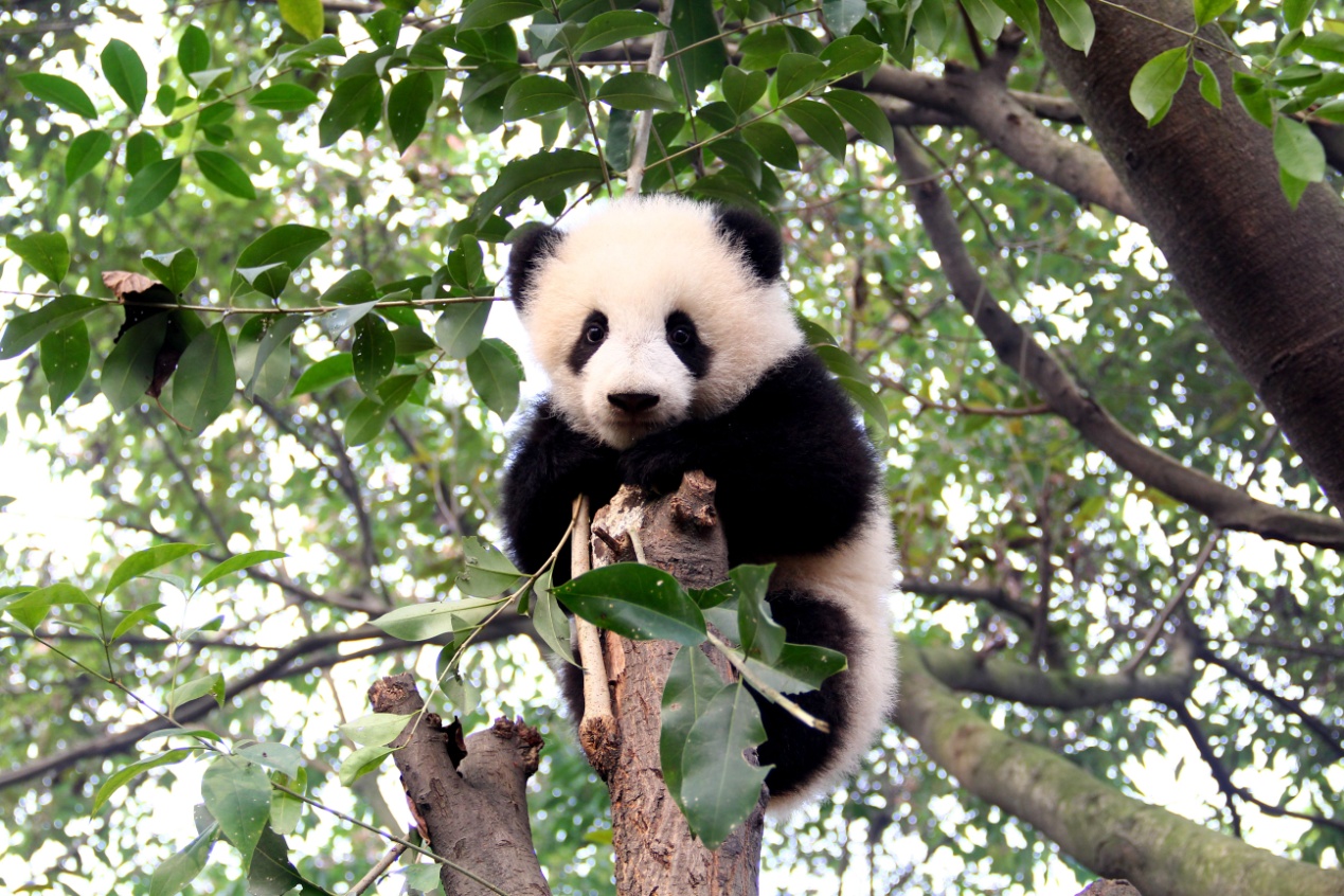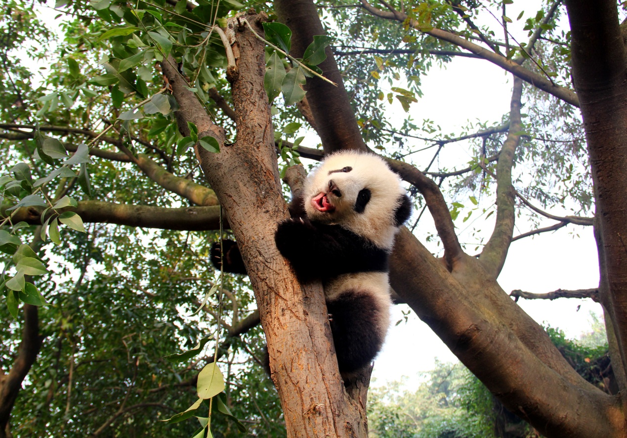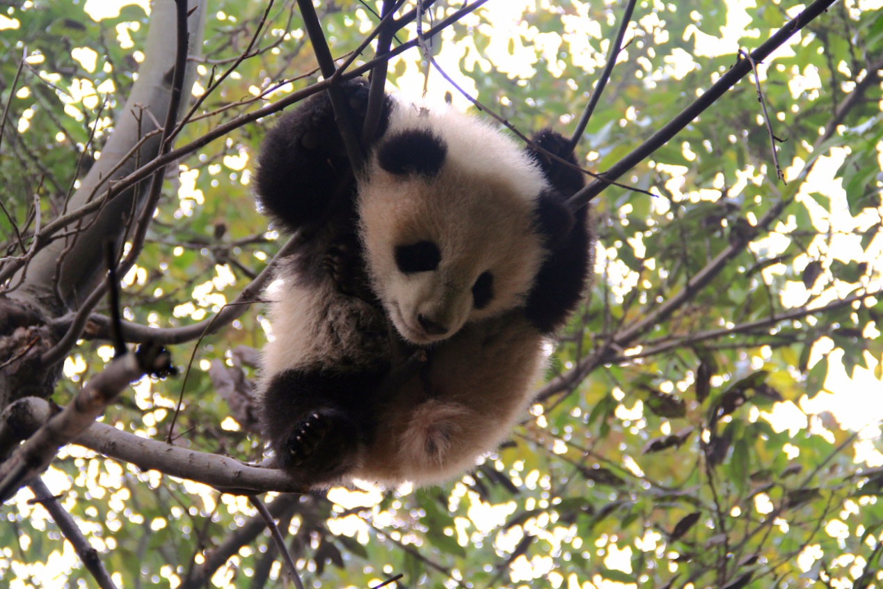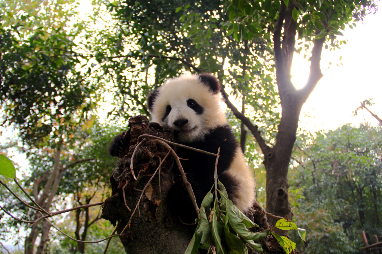 有着盛世美颜的大熊猫“奇果”,是16级熊猫宝宝里面爬树高手中的高手。