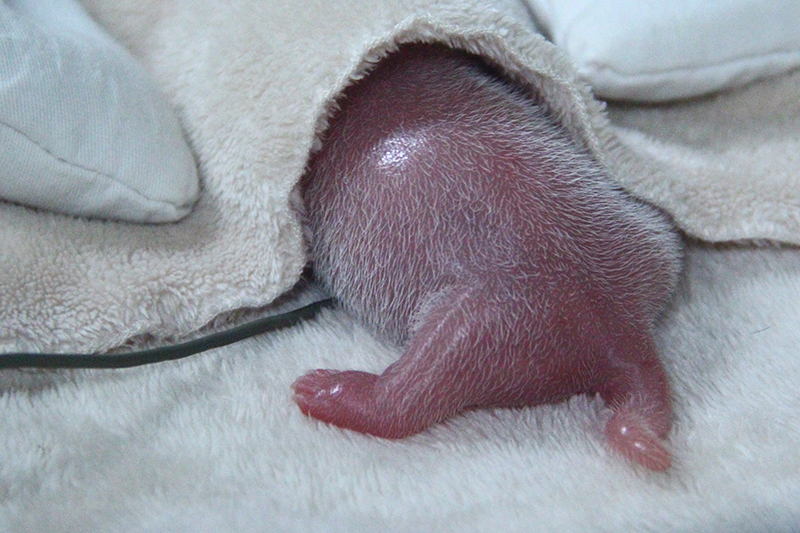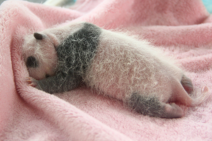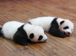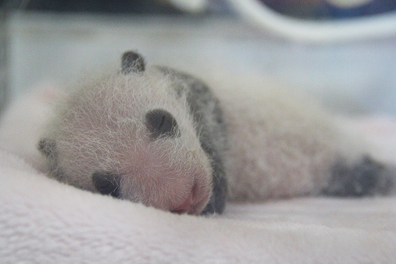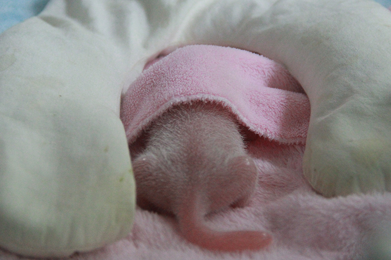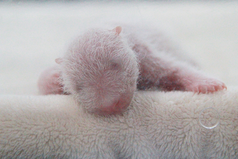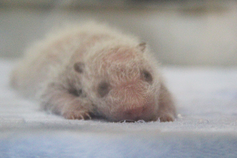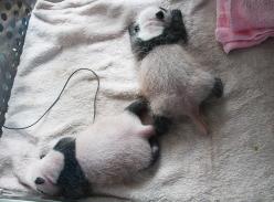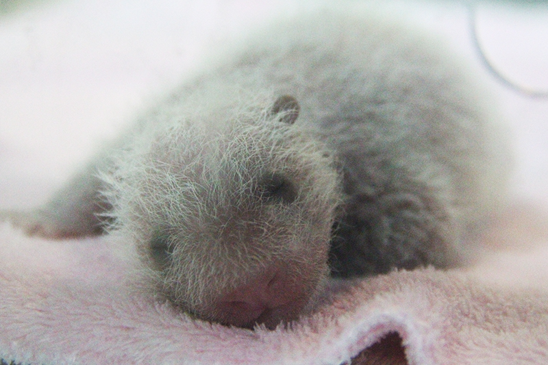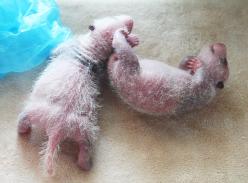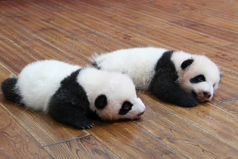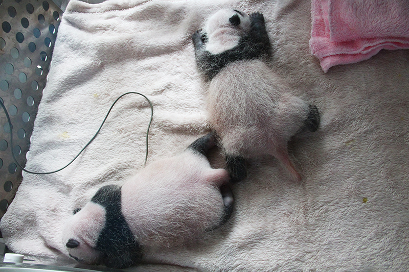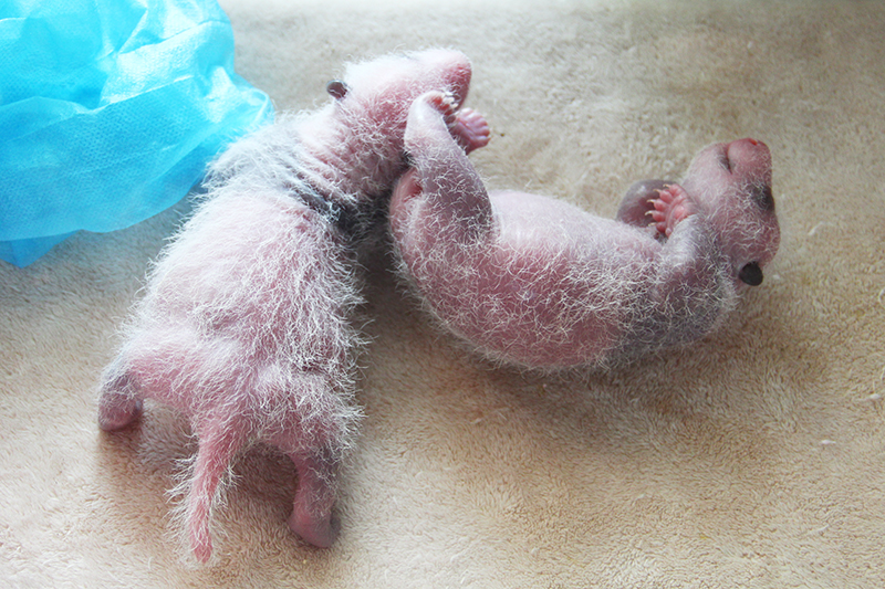 大熊猫芝芝在2017年4月生下双胞胎,15天的哥哥芝士和弟弟芝麻