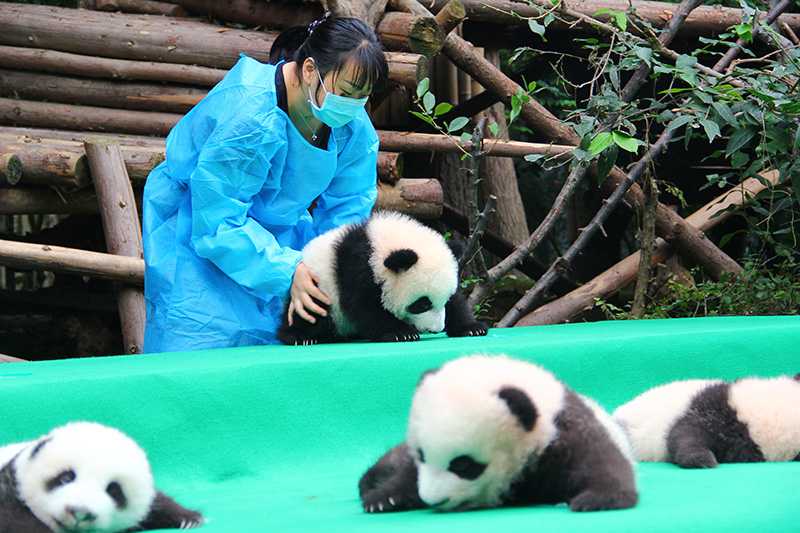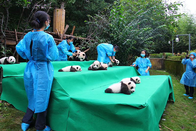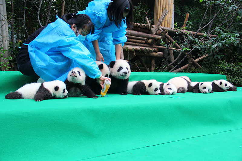 今年在成都大熊猫繁育研究基地一共出生了10只熊猫宝宝,快看这散落一地的熊猫宝宝!