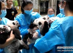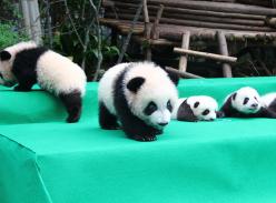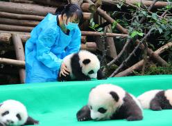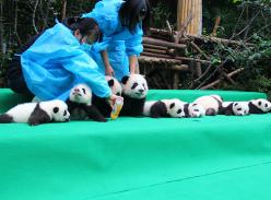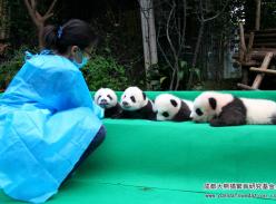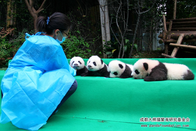 9月27日上午10点左右,见面会正式开始。奶妈们抱着可爱的小团子们依次来到活动场,在游客们的阵阵惊呼声中将熊猫宝宝们放在绿色的展台上,场面热闹而喜庆,可爱值一度爆表。