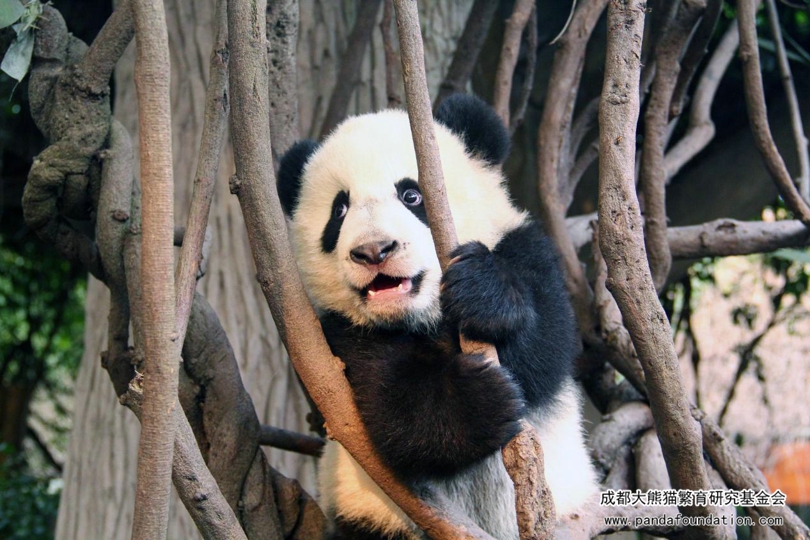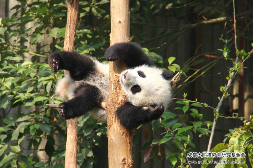 虽然大熊猫懒,但是它们有时也会在自己的“健身房”——室外活动场地里“生命不息、运动不止”。尤其是在它们的幼年时期,对世界有诸多的好奇。当你通过视频直播认真观察大熊猫在日常中的一举一动,你就会发现这些软软肥肥、可爱异常的大熊猫幼仔们在镜头前可以用“战斗力惊人”来形容:或是互相扑打、或是热衷添乱、或是对可怜的摄像师紧追不舍。但是更多时候,它们会选择去“残害”花花草草,要么把小花小草啃得一片狼藉,要么就在小树上又蹦又跳玩起“杂耍”来。正在展示高难度“杂耍”的小馨
