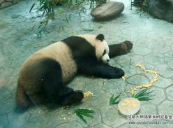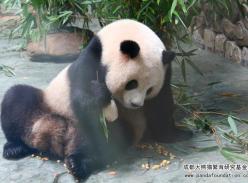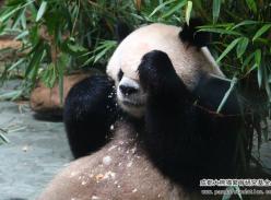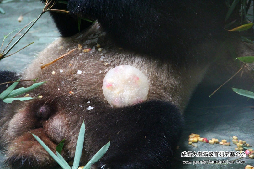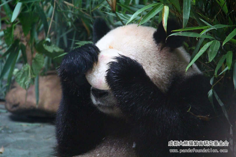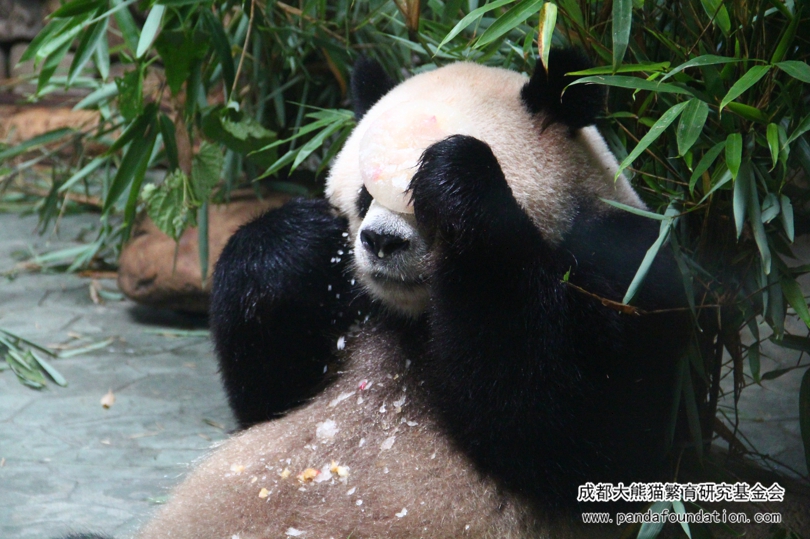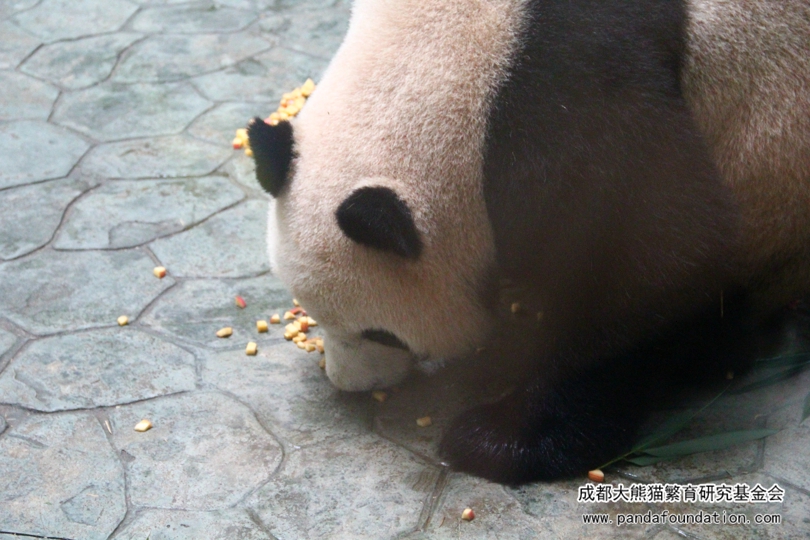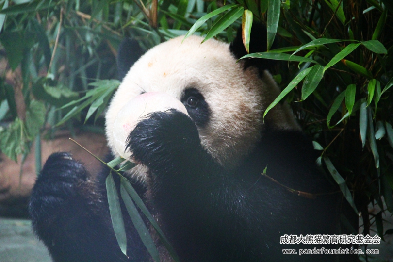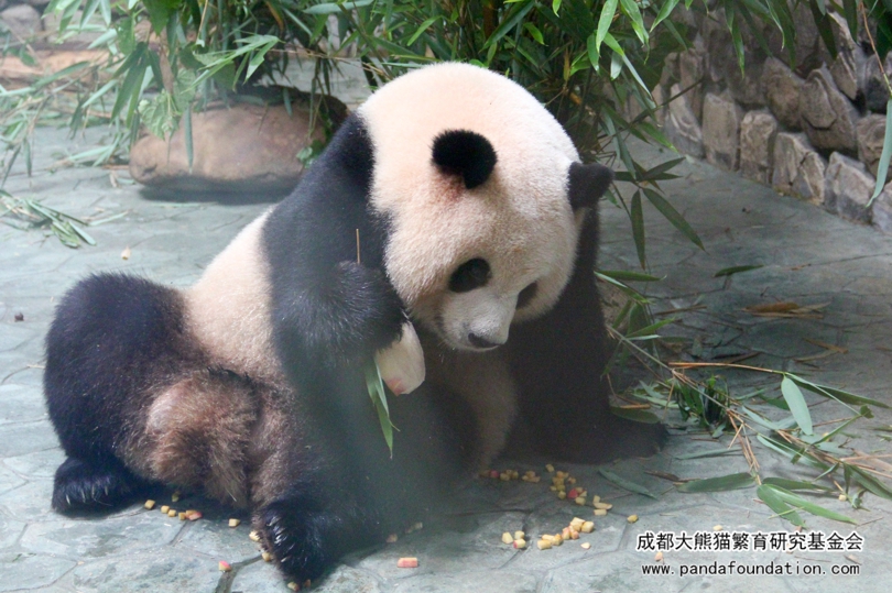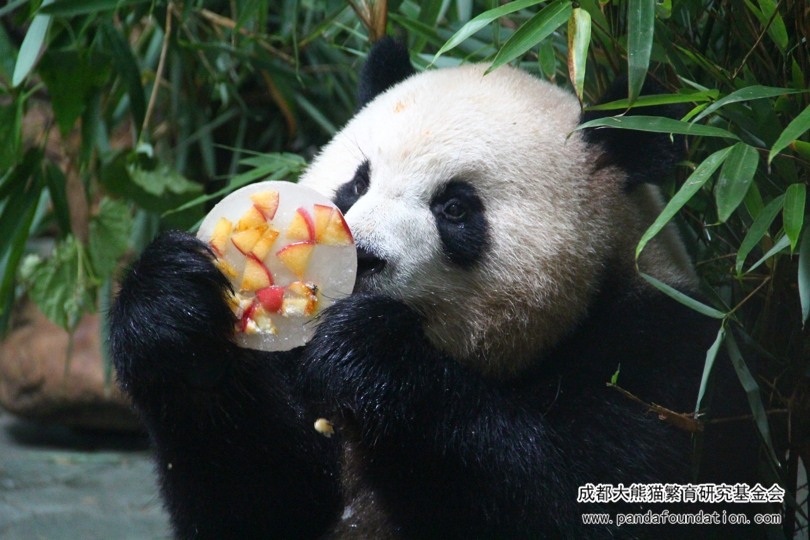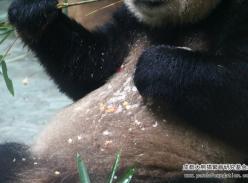 放下冰蛋糕的奥莉奥又吃起了竹子,毕竟这才是主食,真是个不挑食的好熊猫。