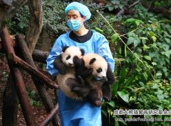 是今年熊猫基地出生最早的3只大熊猫幼仔,他们也被称为“太阳三巨头”