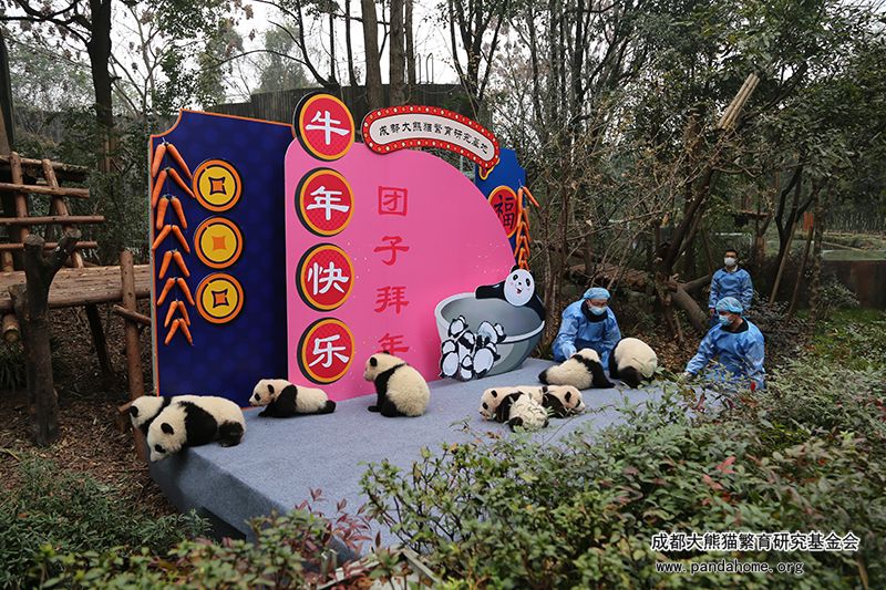 2021年2月4日小年,为了迎接新春佳节的到来,举行了月亮产房2020级新生大熊猫幼仔新春拜年活动!大家都在等待小汤圆们的入场。
