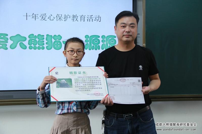 On May 15, 2020, representatives from the Chengdu Giant Panda Breeding Research Foundation, together with the teachers and students of the Elementary School Attached to Sanyuan Foreign Language School, held a small and special donation ceremony during the special period of the COVID-19 epidemic.