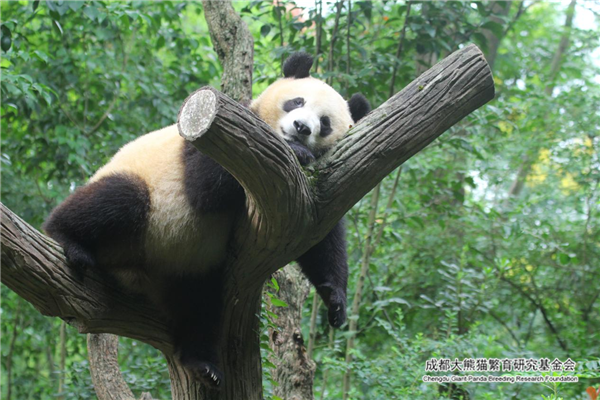 Chun Sheng's big tree feels safe. He can choose any sleeping position on the sturdy tree.