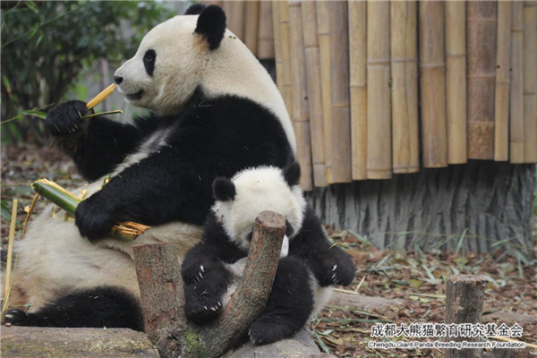 Once she had mastered the steps and the points of eating bamboo, Ai Lin began to pick up tougher bamboo and began her "classroom exercises." Ai Li was diligent and dedicated during the "teaching" process, never stopping to rest.