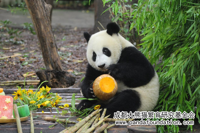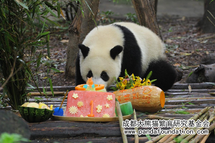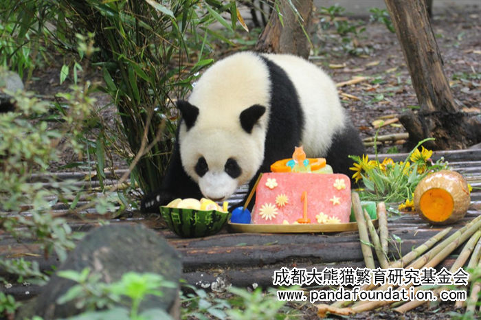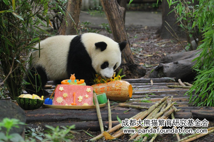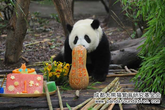 Early in the morning, the keepers prepared Ji Ran's birthday feast. There is an ice cake made from watermelon pulp, and the birthday number "1" was a carrot on the ice cake. The watermelon peel with the words "Happy Birthday" engraved on it was made into a fruit plate, which was not only filled with fresh fruits, but also filled with sincere blessings from everyone for Ji Ran. The pumpkin is engraved with the words "My name is Ji Ran, I am the sweetest cub". In addition to the bamboo shoots that Ji Ran loves to eat, the keepers also carefully prepared a beautiful bouquet of flowers.