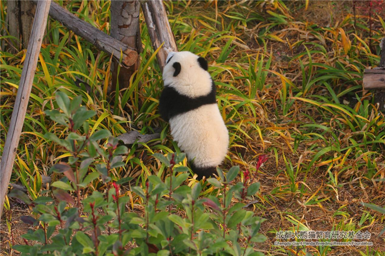 They play freely in the grass, rolling, strolling, gazing, or sitting upright. The grass, who is almost as tall as the cute pandas, is also an interesting companion at this time.