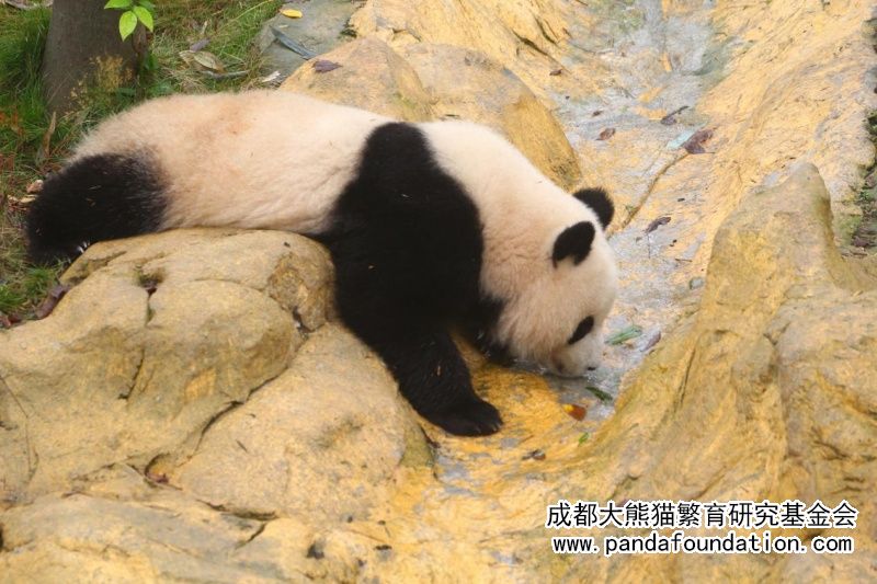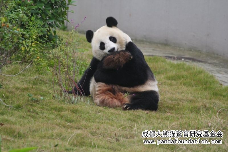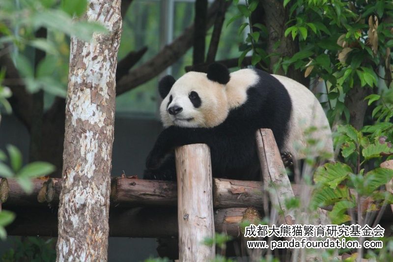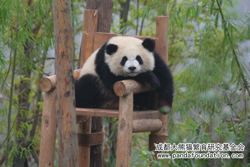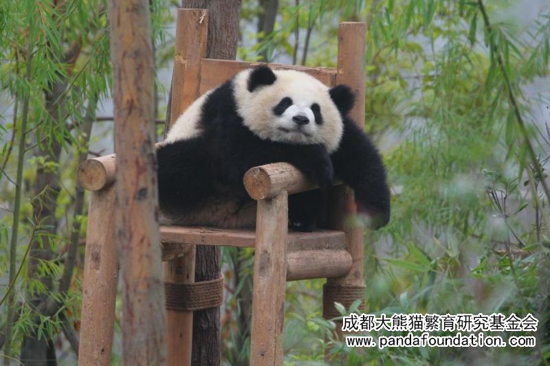 Fu Shuang's sense of relaxation permeates in its light and graceful sleeping posture. Fu Shuang gently drifts off to sleep on the perch, exuding an air of tranquility and warmth.