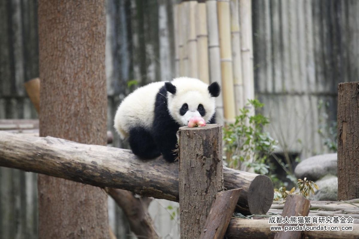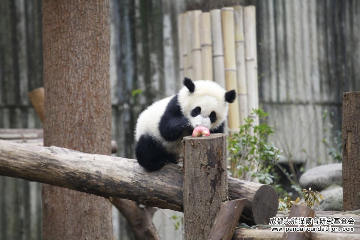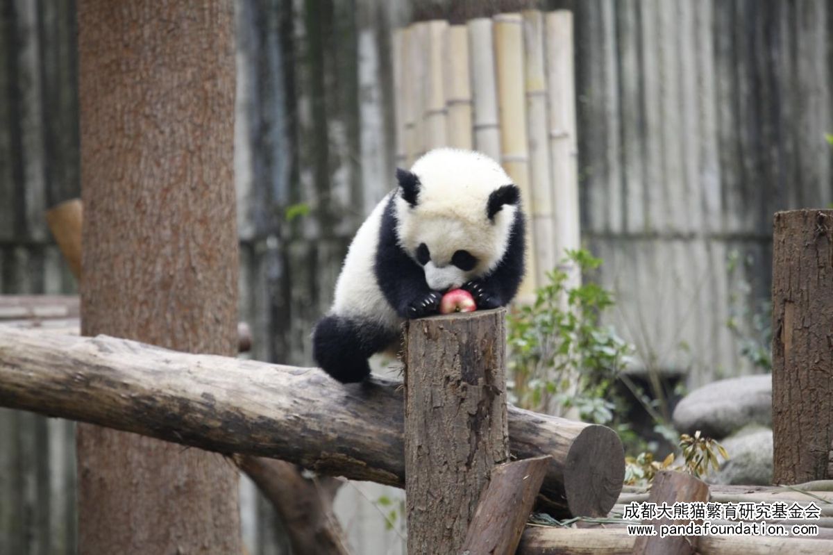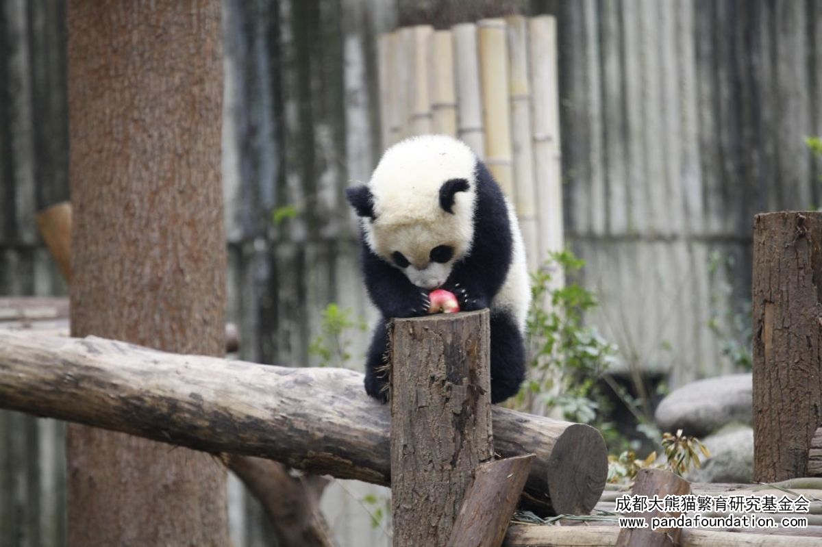 When faith meets mountains and seas by chance, those mountains and seas shall henceforth be crossed; When longing stumbles upon flowers blooming along the path, the beloved may then return at a gentle pace;So what will unfold when giant panda Zhi Hua chances upon a bright red little apple?