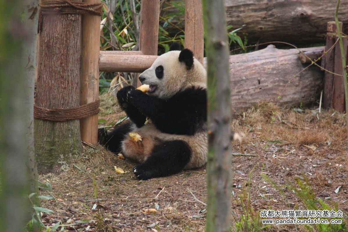 The spring light tints the spring bamboo shoots in the giant panda's moist paws into the color of autumn wheat ears—warm yellow, bright, and glowing with a faint golden luster. As the seasons change, spring and autumn meet at this very moment.