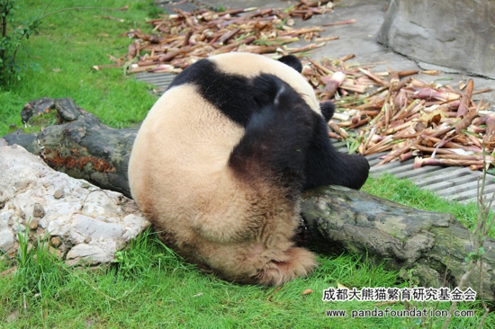 Durante las 24 horas de un día, el panda utiliza la mitad para comer y la otra, para dormir. Pero esa rutina no se atribuye a su pereza sino a lo que comen ----- el bambú, que tiene pocos nutrientes y calorías bajas. Los pandas también tienen un sistema digestivo con pobre capacidad de absorción, que se limite a absorber 17%~20% de calorías en una alimentación. Por esas razones, con el fin de almacenar energías, lo único que pueden hacer es comer más y reducir el movimiento suyo. Por lo tanto, permanece su aspecto gordo para adaptarse a las condiciones difíciles de campo. Así, normalmente tratamos los pandas gigantes como unos gordos llevando todo el día comiendo y durmiendo.