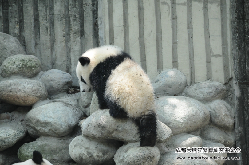 Mientras la madre Ji Li estaba comiendo, la hermana menor no podía mantenerse sentada nada más. Curiosamente escaló la rocalla buscando una aventura pero antes de dar más pasos fue encontrada por su mamá.