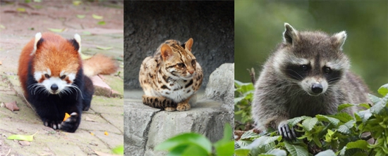 Primero miremos la foto arriba. De izquierda a derecha están de orden el panda rojo (o sea el panda menor, que es diferente del panda gigante), el gato leopardo y el mapache. Desde la foto, podemos observar que son, claramente, diferentes por sus aspectos.