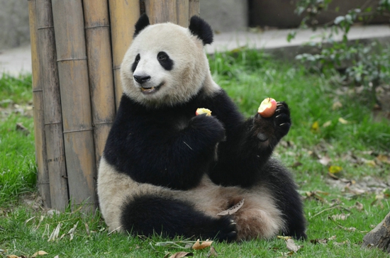 La panda madre Xingrong, una representante extraordinaria de elegancia, tiene una apariencia de jovencita, una sonrisa encantadora, un cuerpo relativamente ligero y encantos que se muestran sin intención. Siempre come pausadamente, sin prisa alguna, ni siquiera cuando se trata de su postre favorito —— la manzana dada por el cuidador. Habitualmente, parte la manzana con sus dientes, agarra una mitad con cada mano y la come despacio, con mucho apetito. De vez en cuando, cuida los sentimientos de los visitantes y levanta su cabeza para que le tomen fotos.