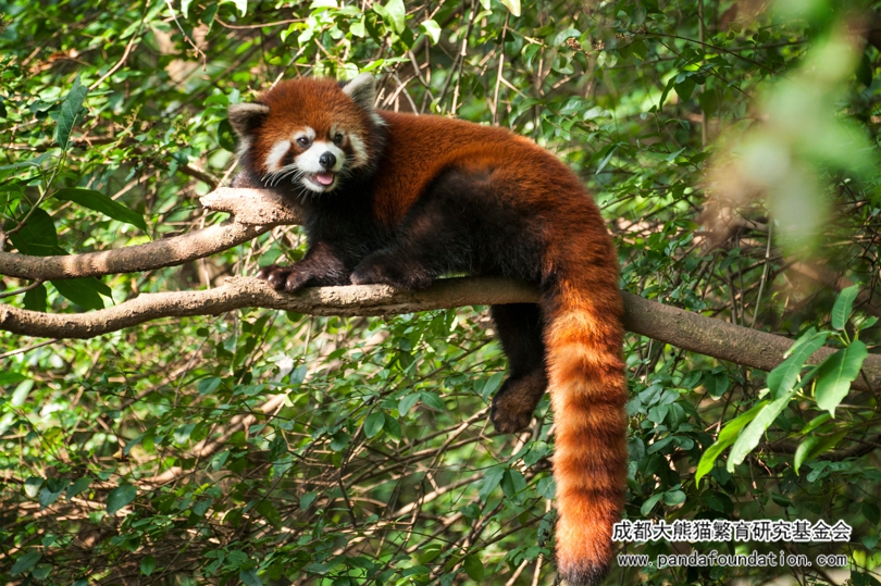 Un panda rojo adulto. Cuenten si son nueve anillos.