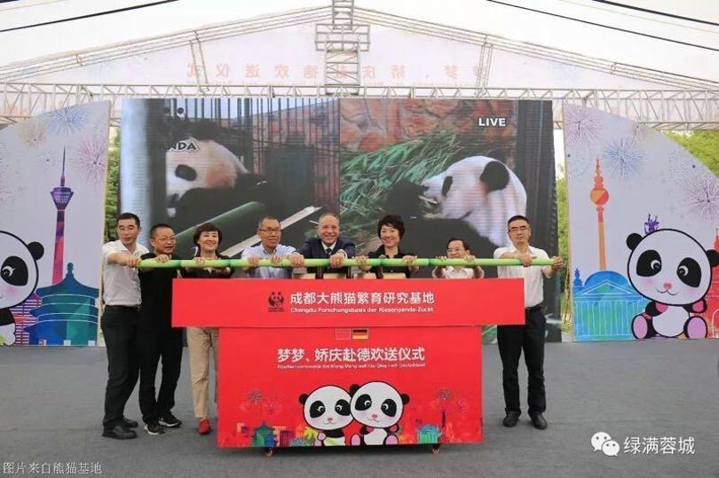 Sin embargo, su historia con Alemania no terminó allí. El 23 de junio, se celebró una ceremonia de despedida para Meng Meng y Jiao Qing en la Base para la Investigación de Cría del Panda Gigante de Chengdu y en la madrugada del día siguiente se marcharon los dos pandas “embajadores” a Alemania, donde nació Einstein.