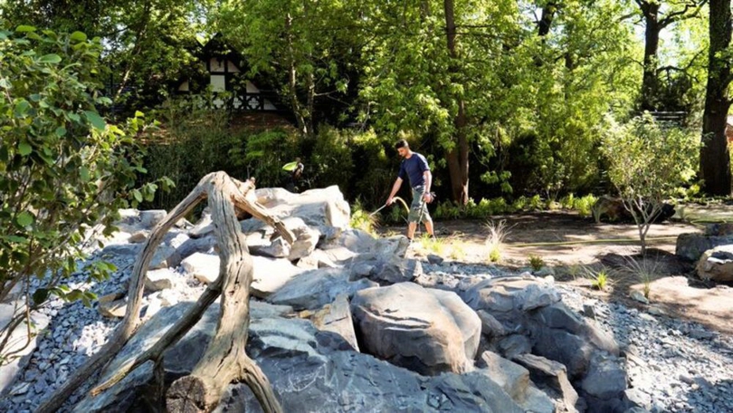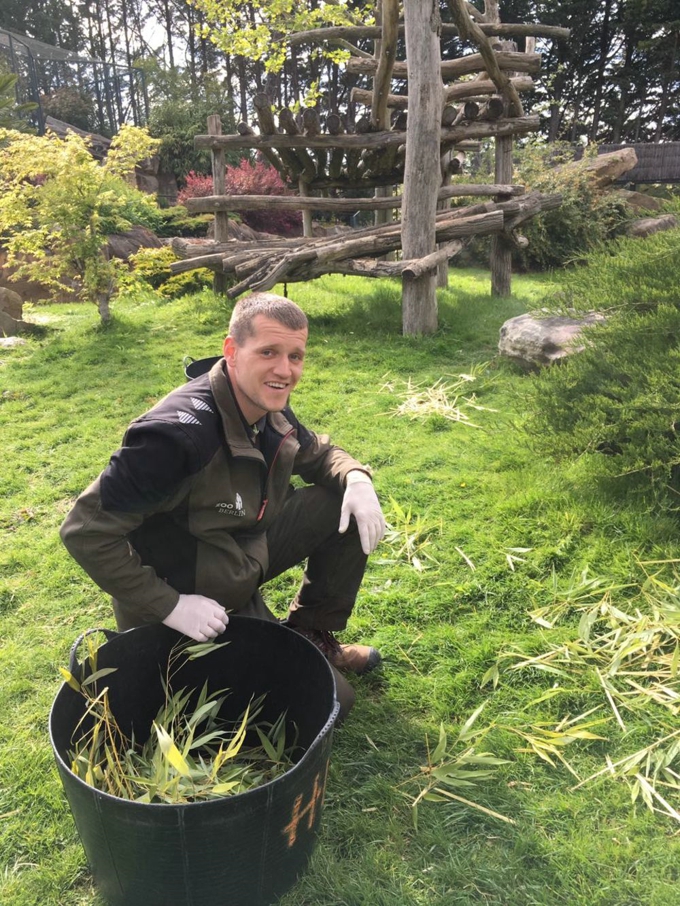 Christian Toll, un cuidador del zoológico de Berlín que lleva 18 años trabajando con los animales, ha arreglado el campo de diversión para Meng Meng y Jiao Qing.