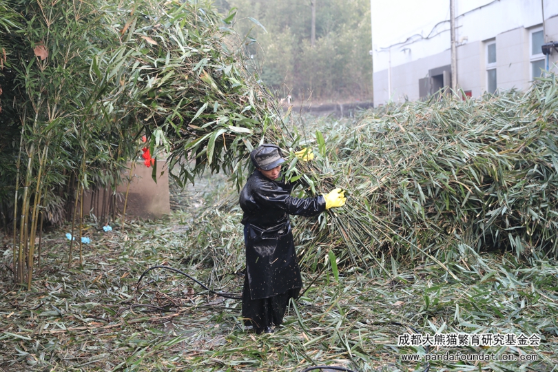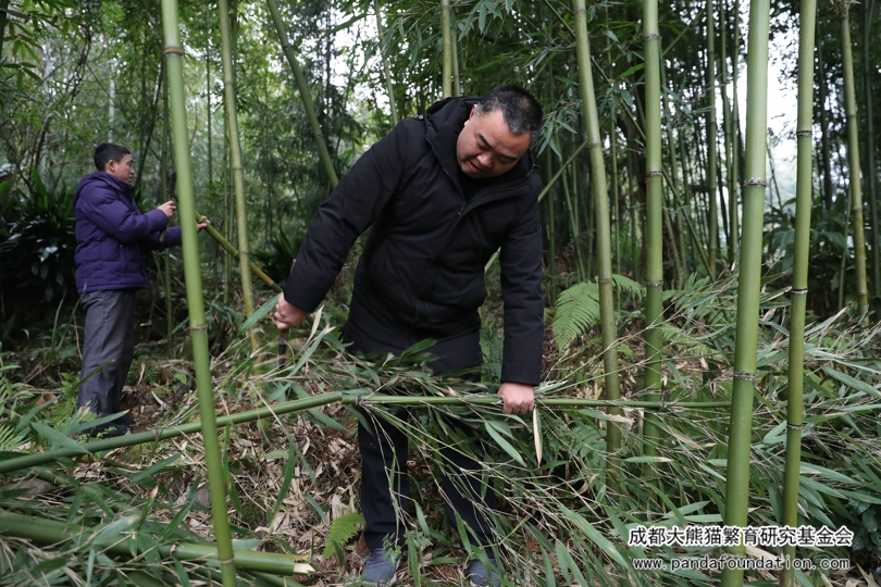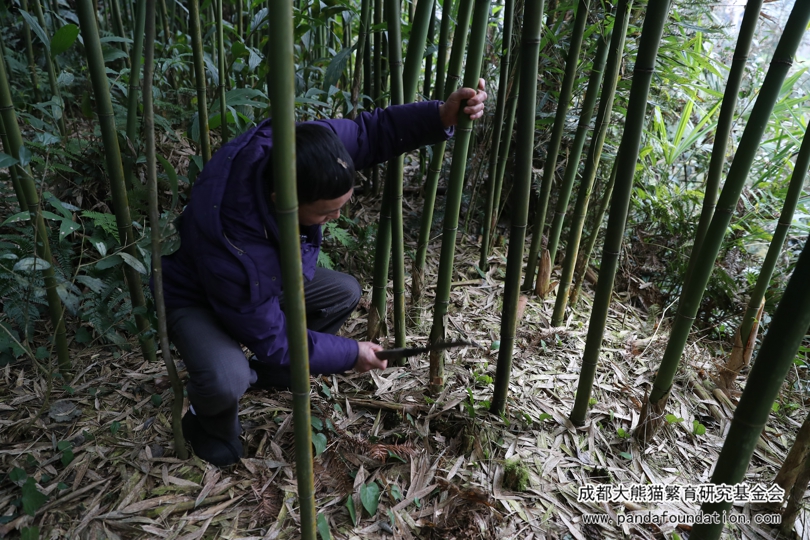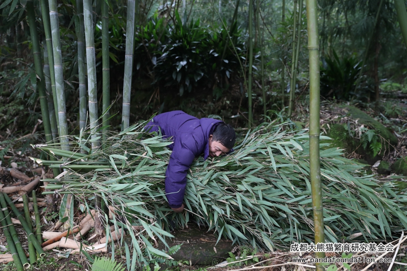A la madrugada de la víspera del Año Nuevo, los trabajadores llegaron temprano a la montaña y empezaron la preparación de la cena que se serviría en nochevieja para el panda——“cortar bambú”. Este tipo de bambú se llama “Pleioblastus amarus”, uno de los cientos de tipos de bambúes comestibles para los pandas, entre los cuales les gustan más “Bashania fangiana” “Fargesia robusta” “Pleioblastus amarus”, etc.