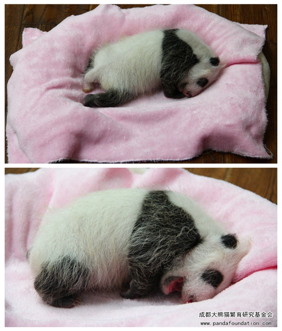 Después de un mes, Zhen Xi tenía más pelo y podía quedarse fuera de la incubadora.