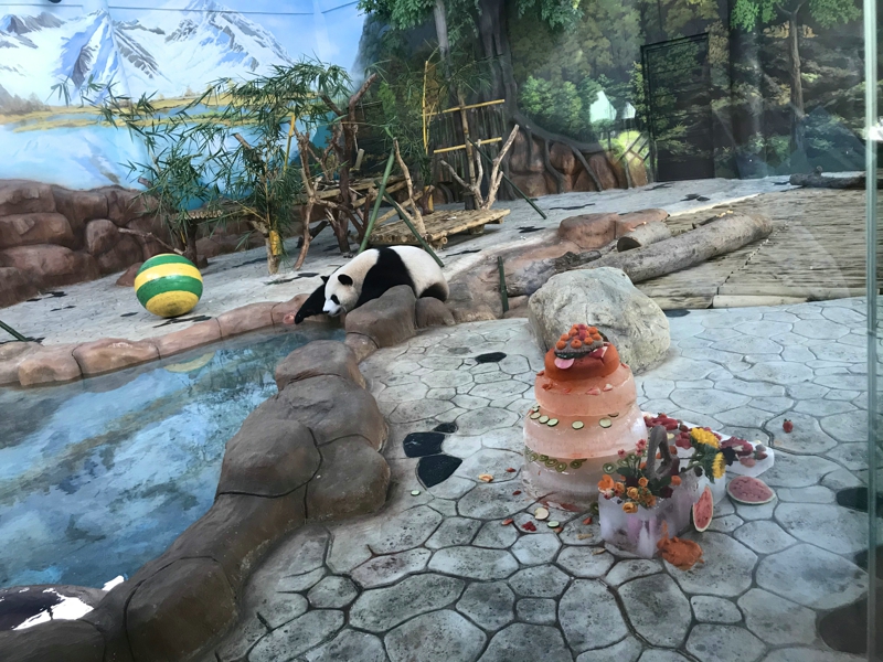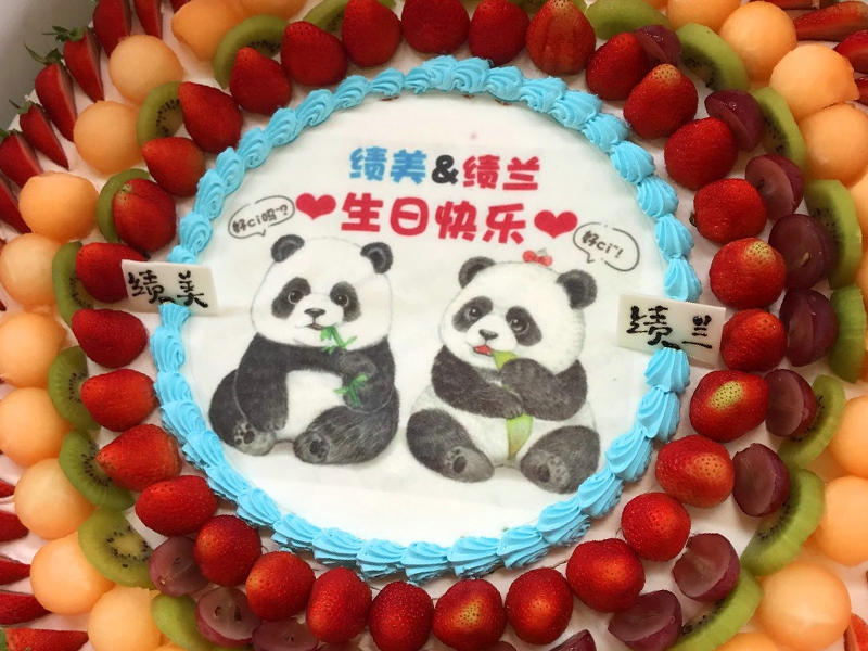 El zoológico preparó especialmente una tarta de cumpleaños para compartirla con los turistas que acudieron a celebrar el cumpleaños de Ji Mei y Ji Lan. ¡Qué lindos eran los dos en el pastel!