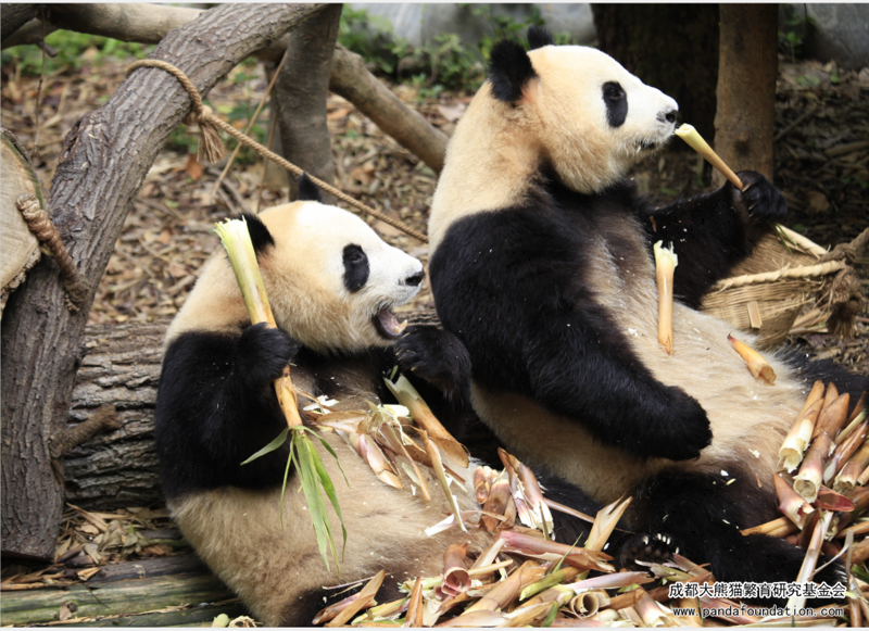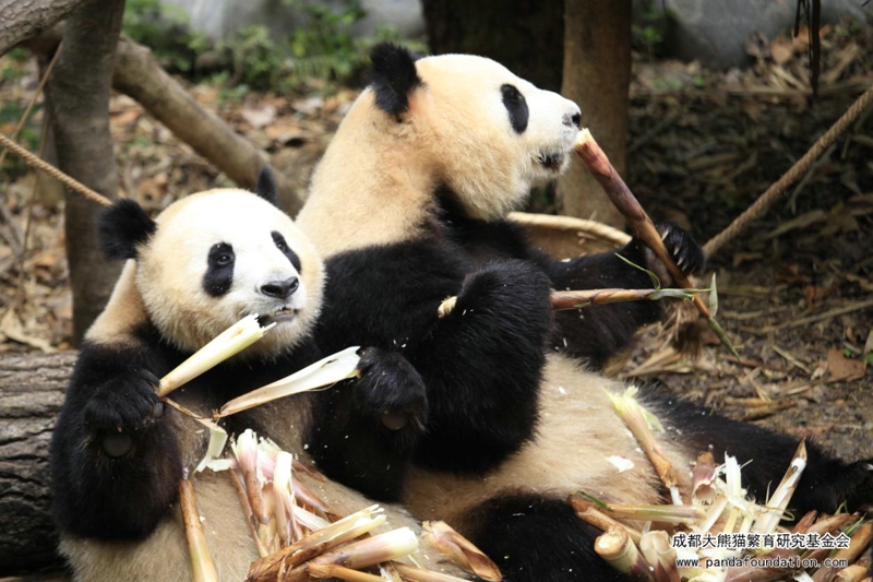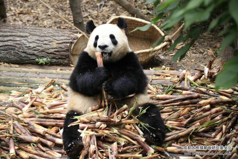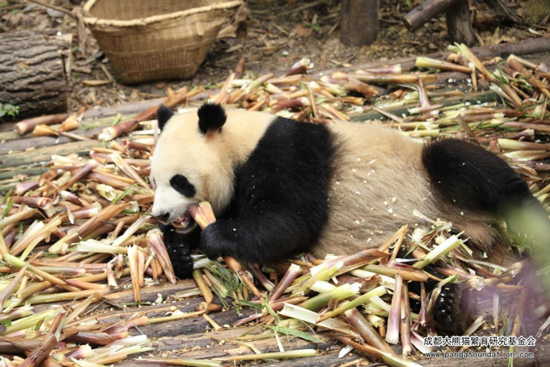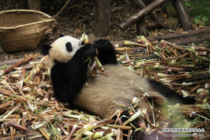 ¿Cómo es la capacidad para comer de los pandas gigantes? Si sigues viéndolos comer, encontrarás que pronto el suelo está cubierto de cáscaras de brotes de bambú.