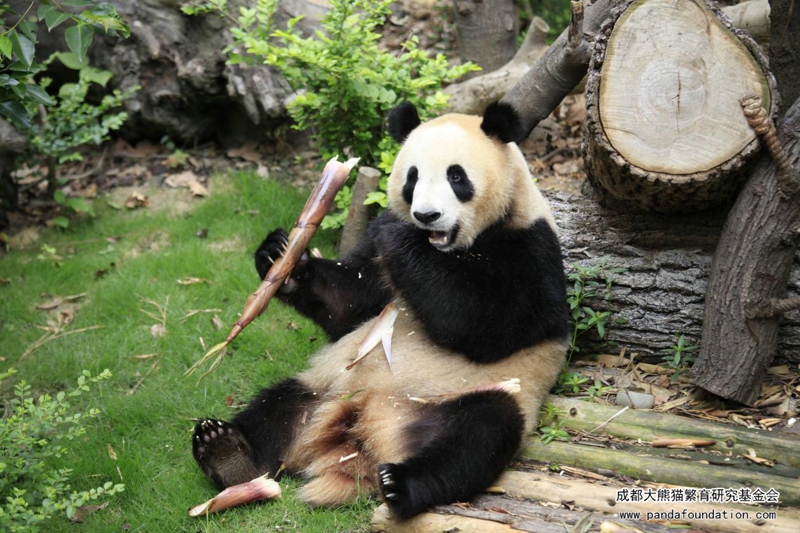 Cuando comen brotes de bambú solos, eligen la postura más cómoda para disfrutar de la comida deliciosa.