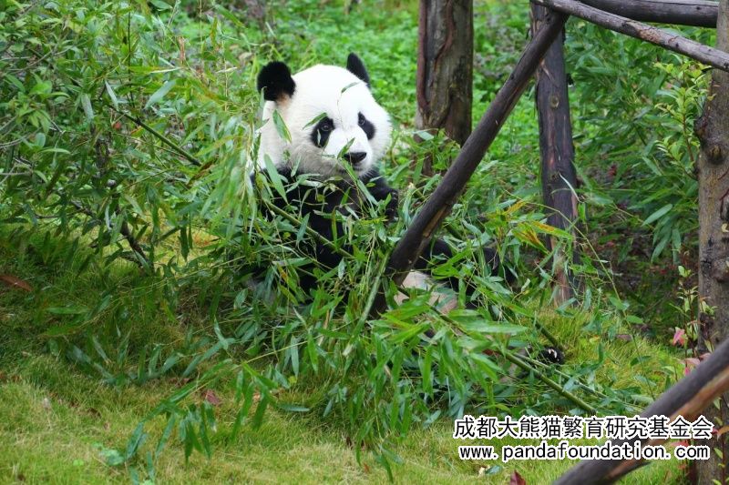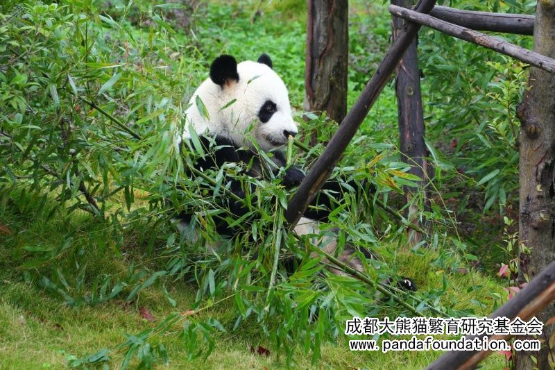 Llenando su estómago con el bambú, Xi Lan probó la dulzura y la frescura contenidas en el tierno bambú y disfrutó completamente del color verde.