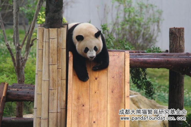La panda gigante Wen Jing tiene más de dos años, y a esta edad es vivaz y a la vez activa y le gusta desafiar a cosas nuevas.