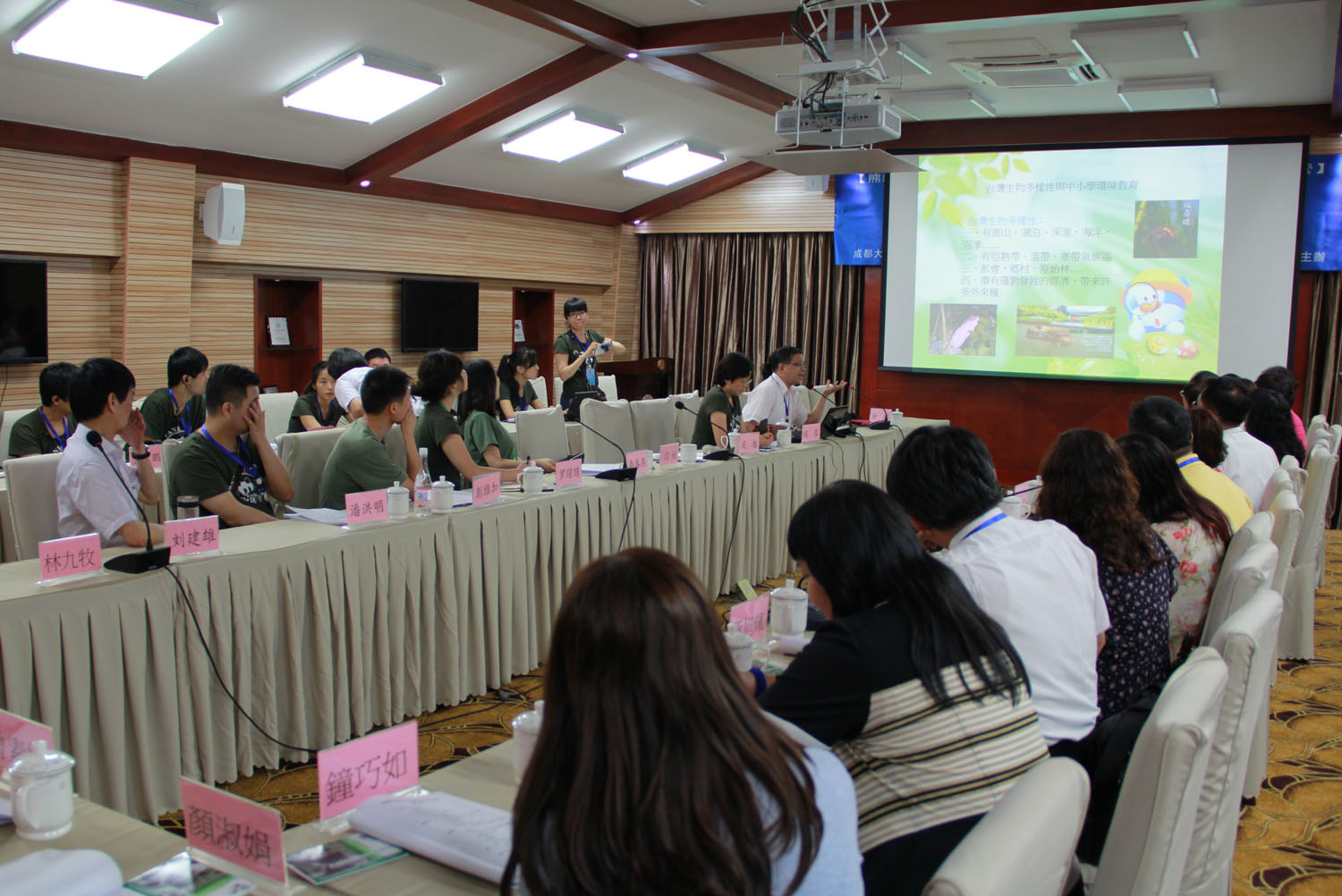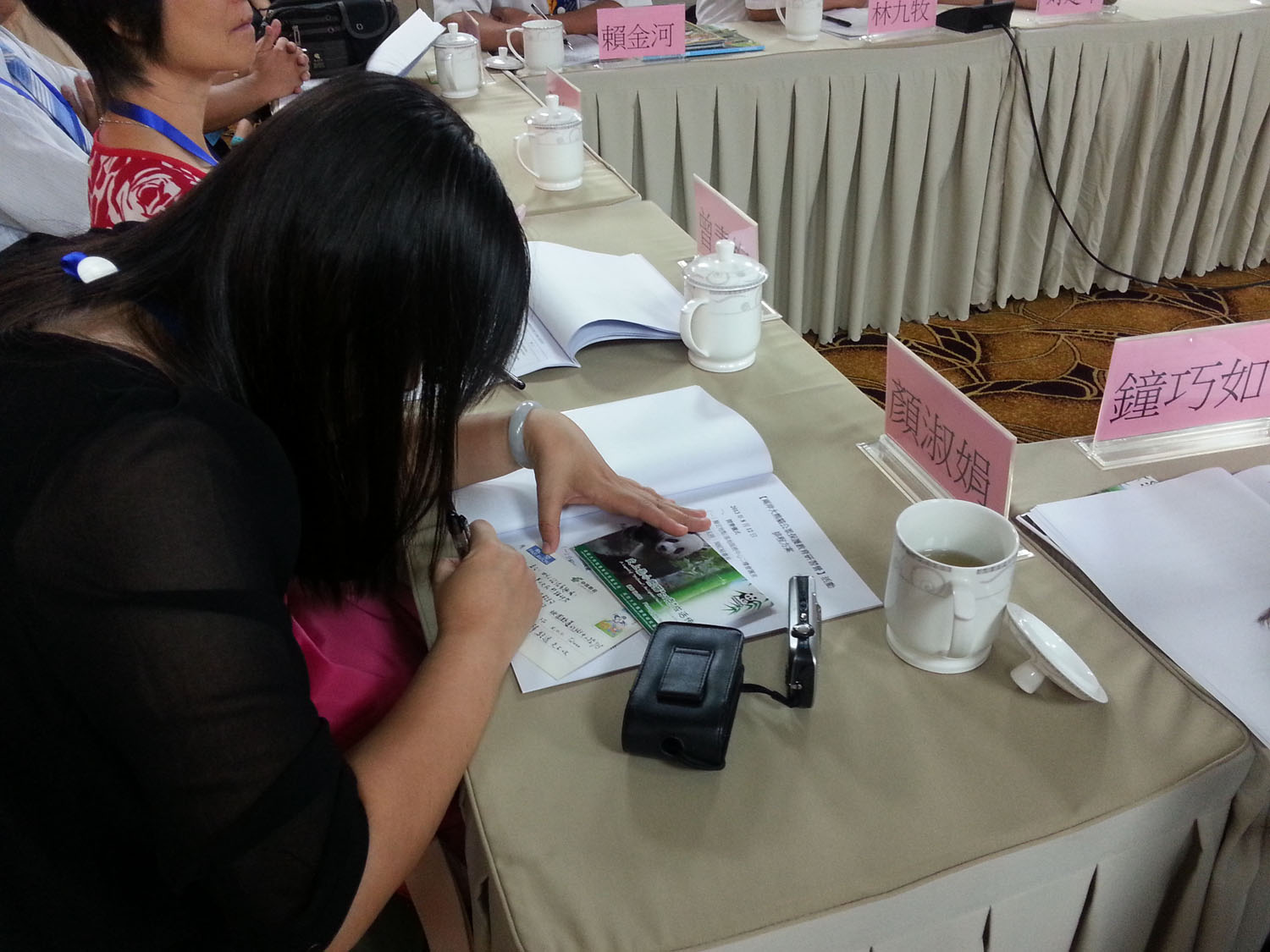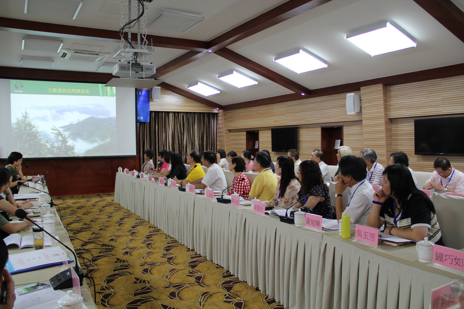 “Clase Panda” Fase II, “Campamento de Investigación a Ambos Lados del Estrecho para la Educación sobre Conservación del Panda Gigante” se llevó a cabo del 11 al 18 de agosto del 2013. El Campamento de Investigación fue copatrocinado por la Academia de Investigación para la Educación Pública sobre Panda Gigante de Chengdu, la Fundación para la Investigación de Cría del Panda Gigante de Chengdu y la Base para la Investigación de Cría del Panda Gigante de Chengdu. Una delegación de 34 personas de la Asociación de Comunicación sobre la Conservación y Cuida de Panda Gigante a ambos lados del Estrecho y de la Asociación de Directores de Escuelas Nuevo Taipéi asistieron al evento. Ambas partes intercambiaron experiencias y éxitos, discutieron tendencias internacionales y compartieron logros sobre la educación pública y conservación del panda gigante y demás especies exóticas en peligro de extinción; lo más importante es que este evento ha promovido la cooperación y comunicación sobre una civilización ecológica a ambos lados del estrecho.