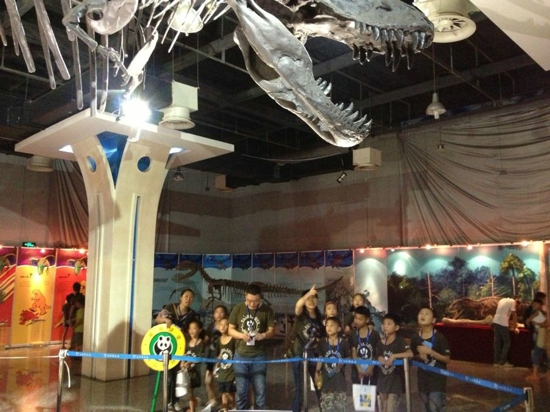 四川科学技術館生徒たちは各科学設備や科学施設などに興奮と好奇心を抑えきれませんでした。特に恐竜館を見学する時、巨大な恐竜の化石を見て、驚きの声が相次いでいました。