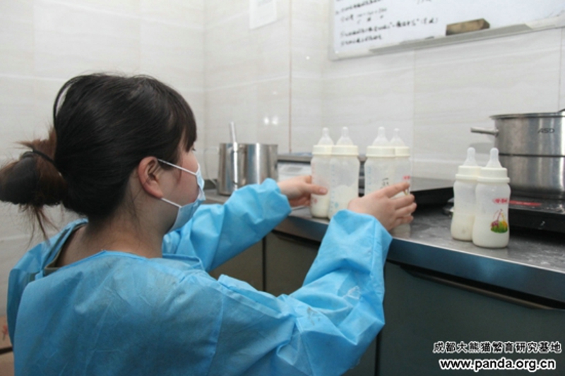 パンダ赤ちゃんにとって栄養たっぷりの朝ご飯はとても重要だから、毎日動物病院の栄養士さんが愛情を込めて調合してくれる