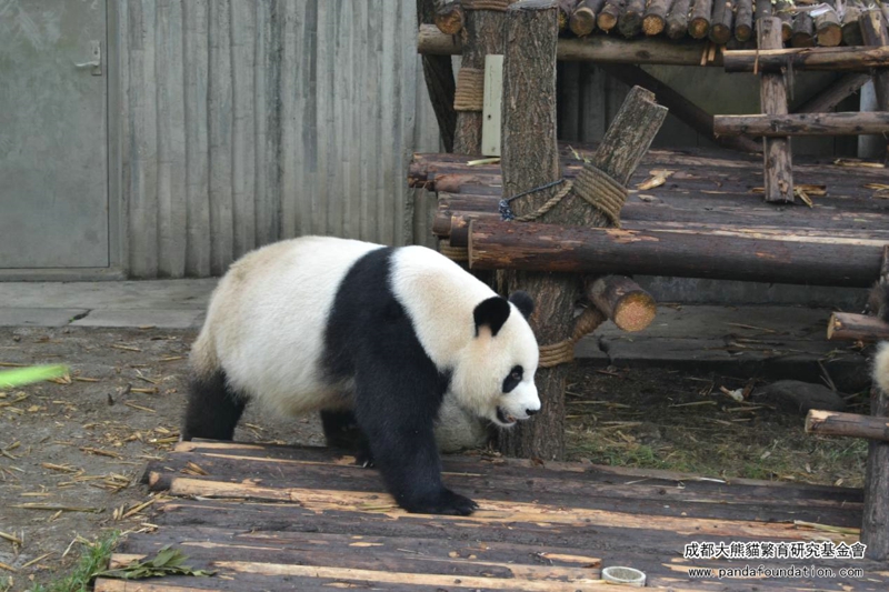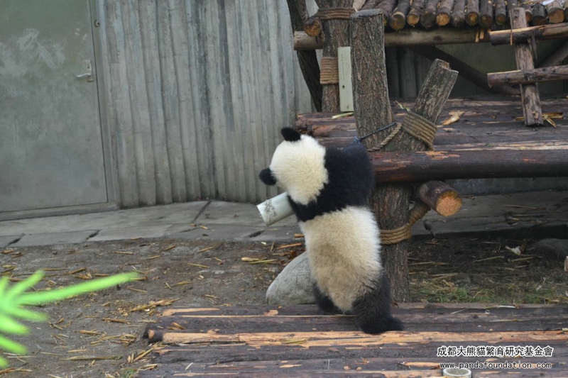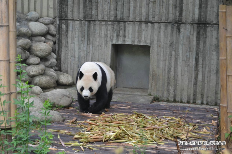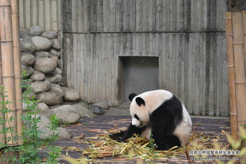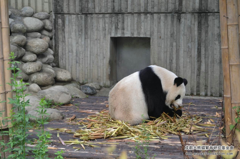 朝、「績麗」はたくましい足どりで、さっき赤ちゃんの食べ残した筍にまた何かあったかを確認に戻りました。パンダママはこれで食糧を節約しなければいけないことを赤ちゃんに教えているのです。食いしん坊の「績麗」は姿勢を変えながら、筍を何も残らずにきれいに食べ終えました。