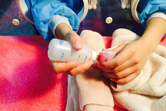 乳を飲ませるのはプロじゃないとだめです。何ミリリットルの乳を飲ませるために、飼育員は30分ずっと立たないといけない。