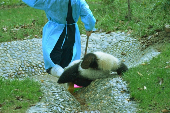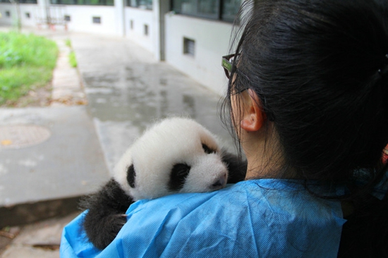 子パンダが生まれた時平均体重は100グラムしかないけど、彼らの成長はとても早いですよ!50日の赤ちゃんの体重は2キログラムまで成長できます!一人で二つの子パンダを抱いて近づいてる若い「お父さん」はかっこいいでしょう?!でも3年以上働いた飼育員さんはほぼみんなの腰椎に病気があることって知ってますか?軽いほうは靭帯損傷、ひどいほうは骨増殖症或いは腰筋過労で、長年肉体労働することが原因で病気になりました。